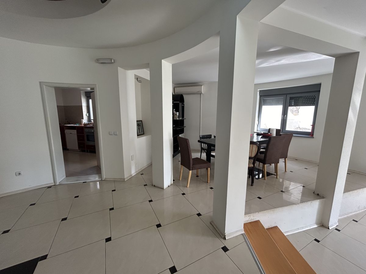 Spratna kuća sa potkrovljem od 242m2, na placu površine 12 ari, Karađorđev Trg. U sklopu prizemlja je velika garaža sa ulaskom u podrum o, dnevni boravak sa trpezarijskim delom i izlaskom na terasu, odvojena kuhinja, spavaća soba, kupatilo, WC i predsoblje. Na spartu su tri spavaće sobe, kupatilo, tavanski prostor sa stepenicama za potkrovlje u kojem se nalazi jedna soba i još jedan manji tavanski prostor. Po podovima je keramika, CG podno na gas, PVC stolarija sa roletnama, trofazna struja, dve klime + podrumski prostor.