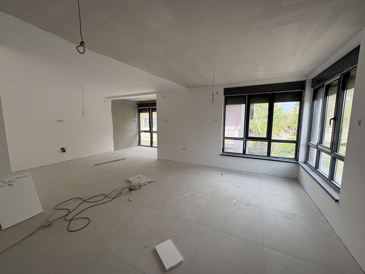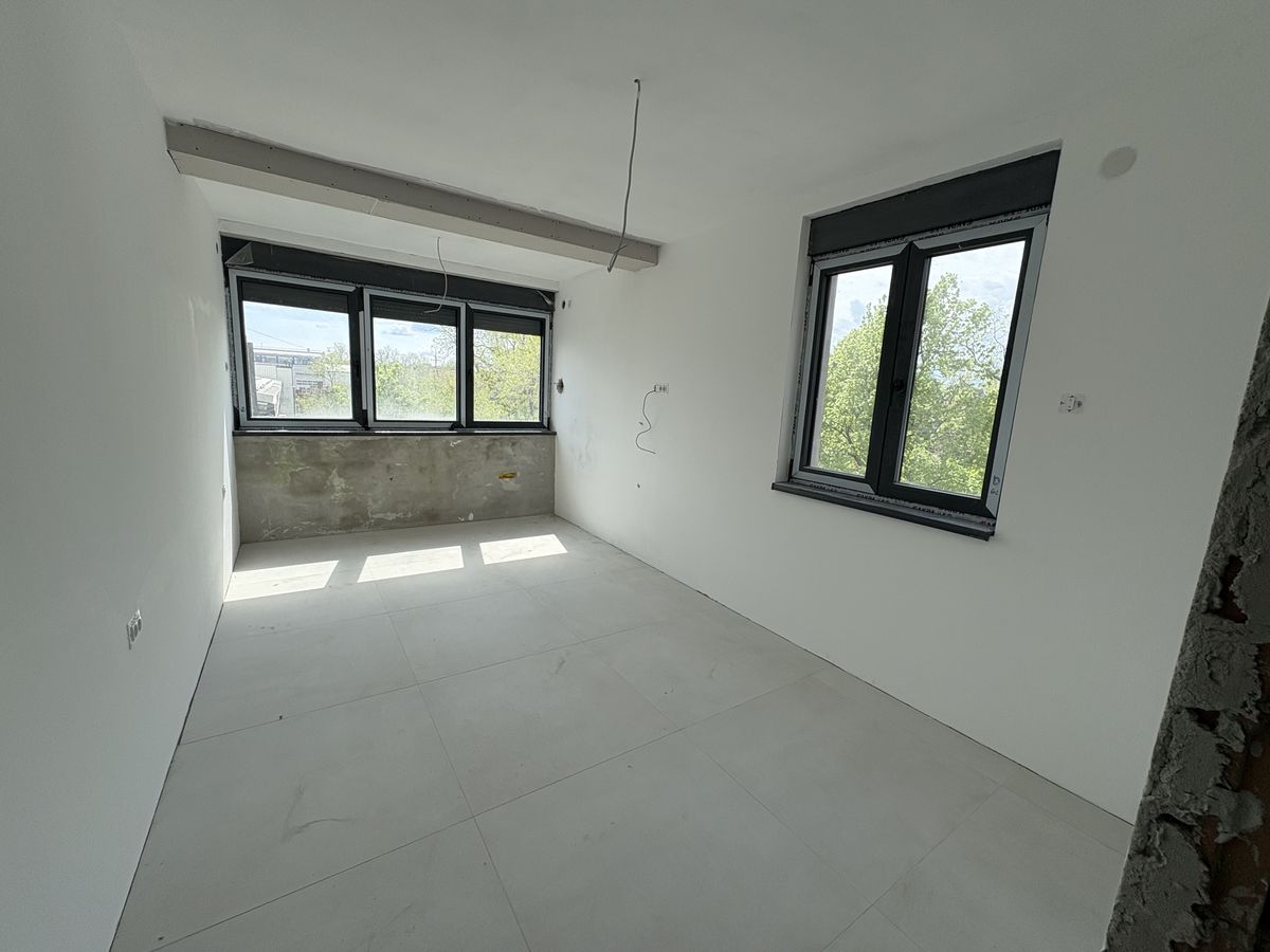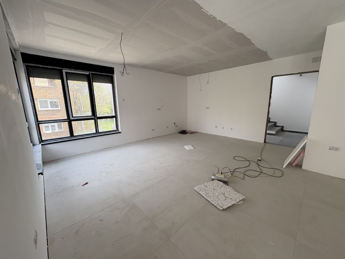 Nov četvorosoban stan u izgradnji od 103m2, na visokom prizemlju i na 1. spratu, 4. Juli. Veliki dnevni boravak sa kuhinjom i trpezarijom, tri spavaće sobe, kupatilo, WC, predsoblje. Po podovima je keramika, podno CG na gas, ALU stolarija, spušteni plafoni, klime. Svakom stanu pripada jedno parking mesto. Završetak radova je predviđen do kraja Jula 2026.god. PDV je uračunat u cenu.