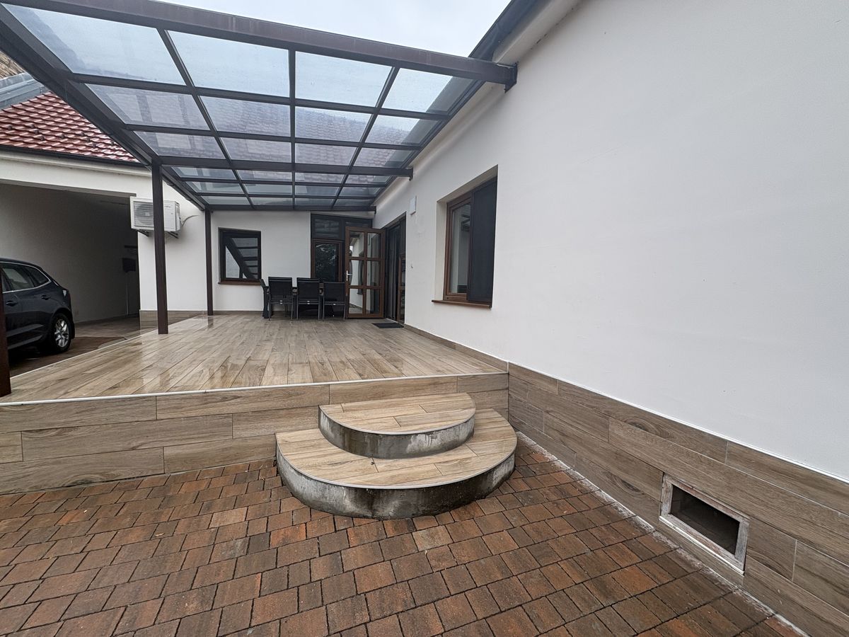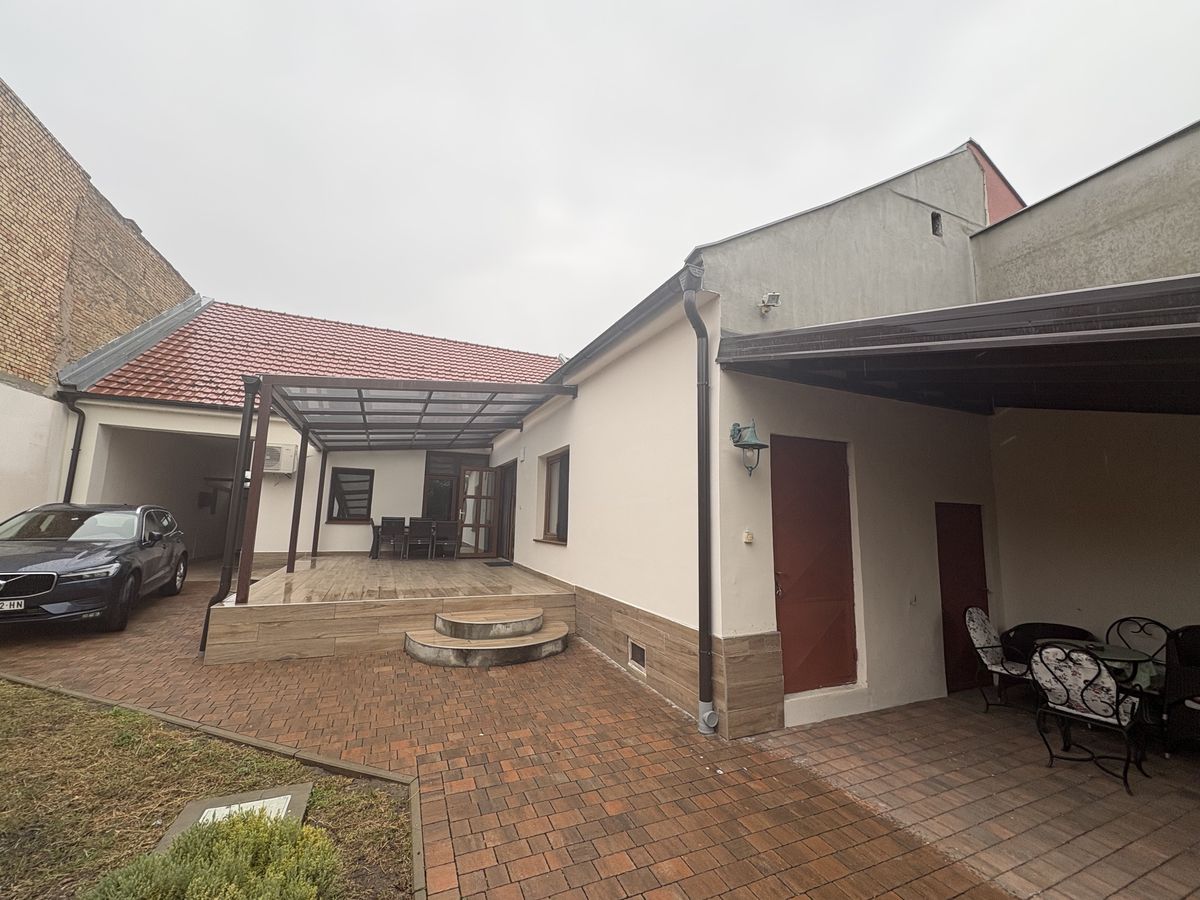 Prizemna renovirana salonska kuća od 223m2, na placu površine 901m2, Žitni Trg. Veliki dnevni boravak, tri spavaće sobe, kuhinja sa trpezarijom, dva kupatila, predsoblje i nadkrivena terasa. Jedna od prostorija se koristila kao lokal i ima svoje kupatilo, može se osposobiti kao spavća soba. Kuća je potpuno renovirana, nove instalacije struje, vode i kanalizacije, ALU stolarija u boji drveta, parket po podovima, klima, CG na gas. Na placu se nalazi pomoćne prostorije, letnja kuhinja sa WC-om, ostava i sl. Kolski ulaz - ajnofor u funkciji garaže, parking ispred kuće. Uknjižena kuća 1/1, moguća kupovina putem kredita.